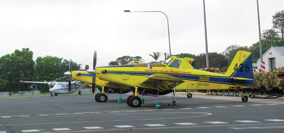 On standby at the Toowoomba Airport for the fire season are two Bell 214B helicopters, two AirTractor AT-802 fixed wing bombers, two air attack supervision platforms and a specialist intelligence gathering light helicopter.