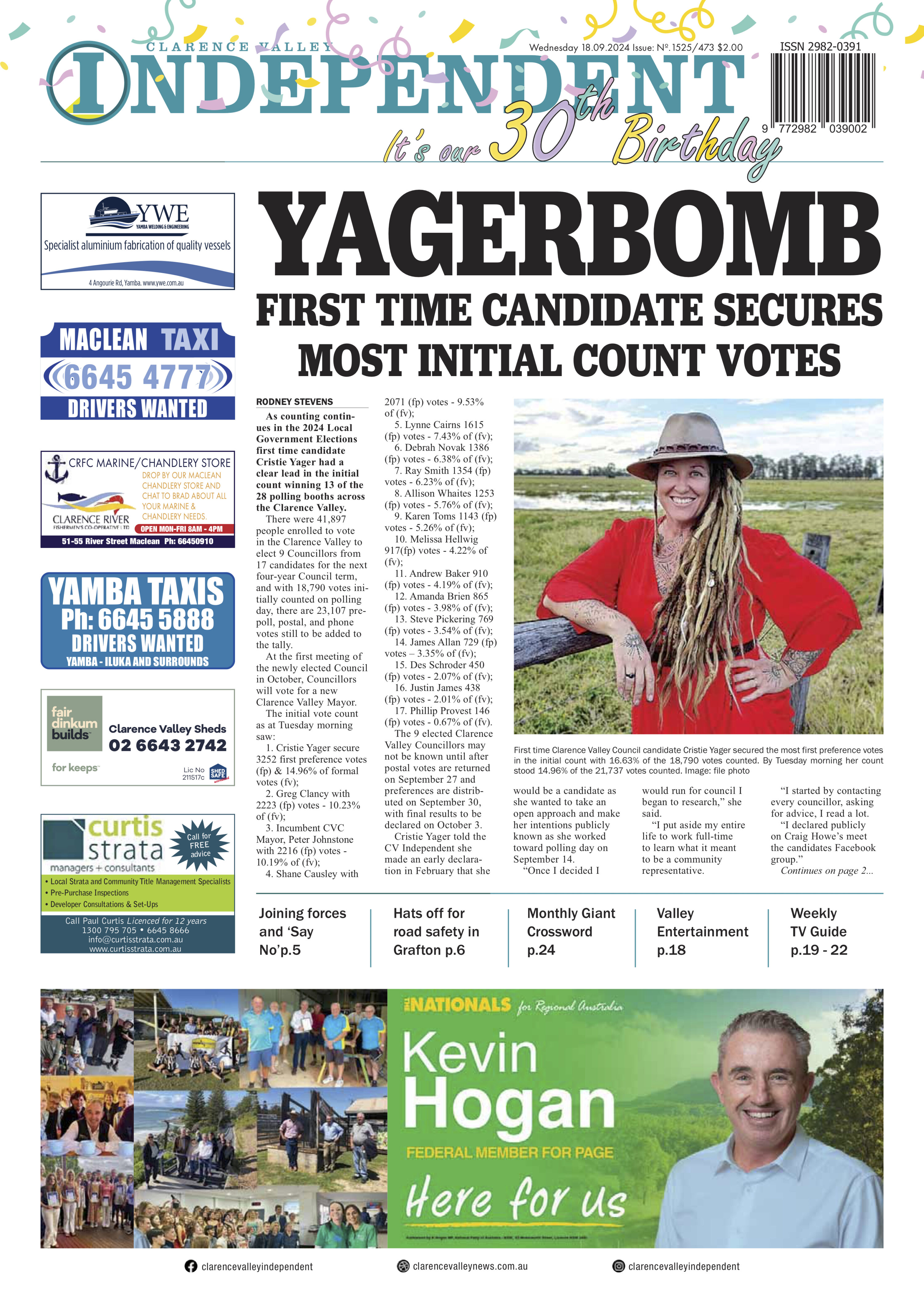 This article appeared in the Clarence Valley Independent, 18 September 2024.