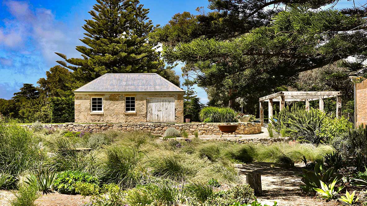 Moorakyne is one of Robe’s fine old historic homes. Built in 1853, the twelve-roomed limestone house and several charming outbuildings sit in a prime position on an acre of coastal land. In 2017, Margaret and Donald Ferguson bought the property and spent several years restoring the house before focusing on the neglected garden in 2020.