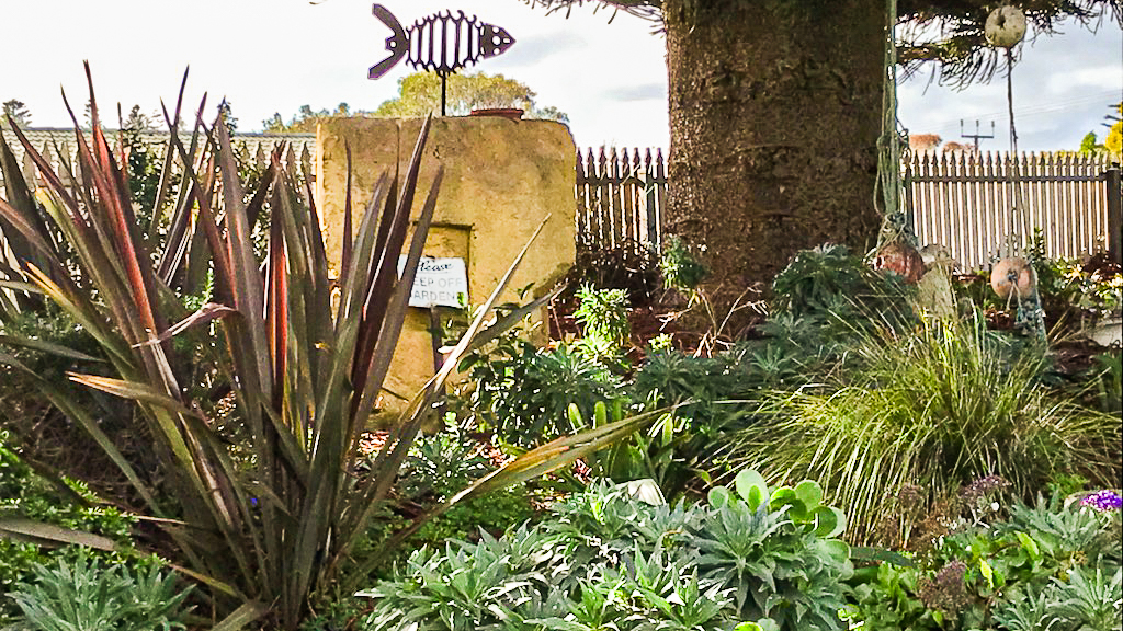 Garden highlights: Resilient plants, many natives and bird attracting plants, vegetables in raised beds. Many sculptures and quirky garden art, massive rock in front garden with sculpture of fish made from old spanners by a local artist. Extra activities: Sausage Sizzle.