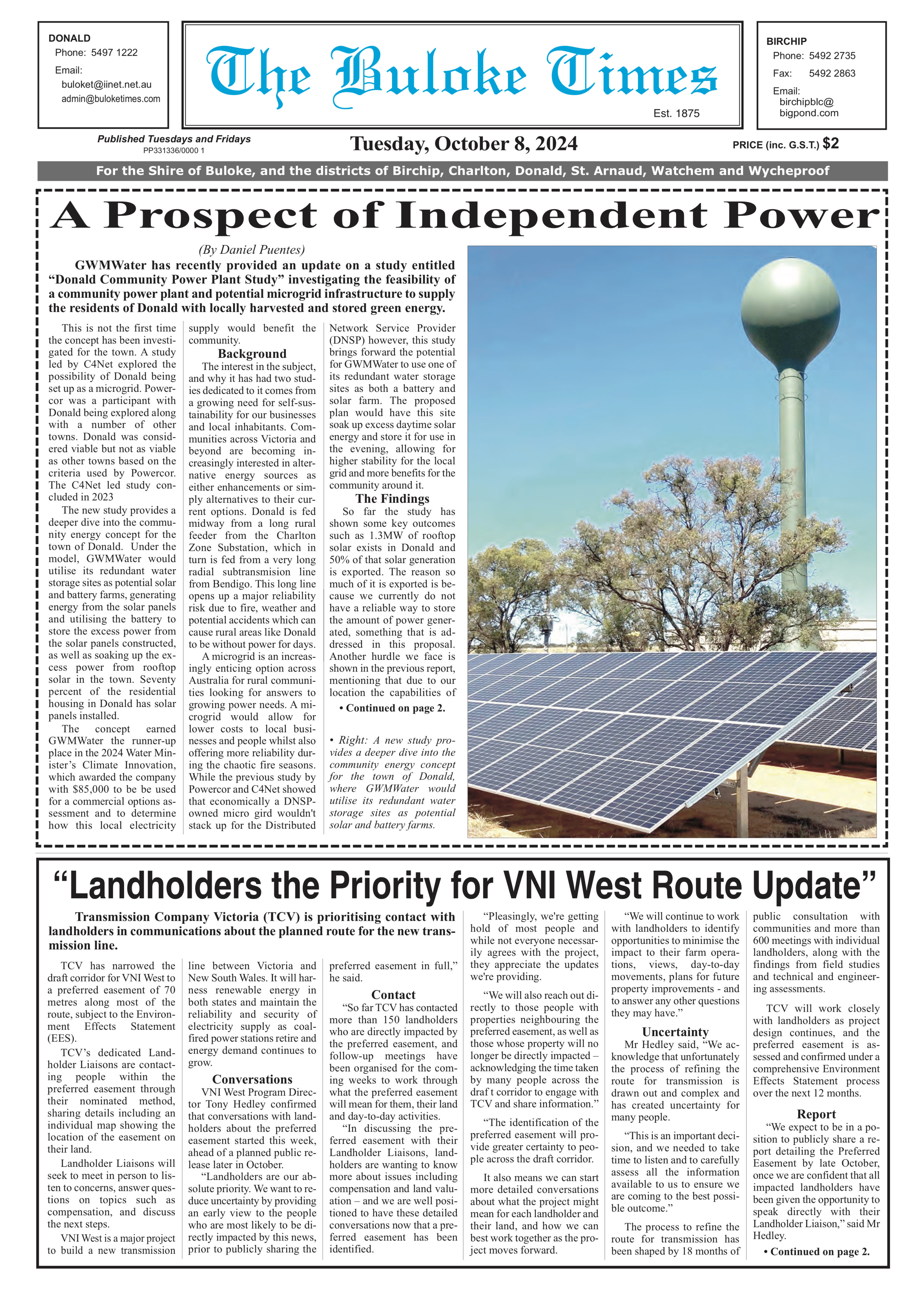 NewsOut now - Archive - October 2024Vic The Buloke Times, 8 October 2024 By The Buloke Times 8 October 2024 Recent stories Fertiliser shortage at home, subsidies for exports abroad Trevor Whittington, CEO WAFarmers - Council is running effectively – OLG Rodney Stevens, Clarence Valley Independent - Newstead medical physicist grateful to help community Contributor, Tarrangower Times - Old wool table now looks classy Mim Rogers, Allora Advertiser - New Australia-United Kingdom MOU to unlock more investment: Chalmers, Reeves Contributor, ARR.News - Country Cabinet to continue under re-elected Malinauskas Government: Malinauskas Contributor, ARR.News - Public artwork commission to celebrate Loddon riverbanks Contributor, ARR.News - Don’t risk a bite to the hand that feeds Contributor, ARR.News - Watch My Cousin Frank on SBS On Demand: NORPA Contributor, ARR.News - Welcoming Hurford Hardwood as a NORPA Partner: NORPA Contributor, ARR.News - Killing koalas with kindness: Vic Jurskis Vic Jurskis - Opening smarter pathways to cut landfill emissions and earn ACCU revenue: Wilson Contributor, ARR.News - Light Horse skills not lost Mark Collins, Corryong Courier - Environmental surveys continue Contributor, The Buloke Times - Farmers’ rights eroded Contributor, The Buloke Times - Load more The Buloke Timeshttps://www.buloketimes.com Out now!Buy here! l Subscribe here! Please leave this field emptyKEEP IN TOUCH Sign up for updates from Australian Rural & Regional News Manage your subscription We don’t spam! Read our privacy policy for more info. Thank you for subscribing for updates from Australian Rural & Regional News! By default you will receive all our newsletters. If you'd prefer to choose which newsletters you receive, go to the manage your subscription page make your selection. I'd love to hear from you if you have any feedback on the newsletter or the news platform or the news itself. Best Wishes, Fiona Fox The Editor Share FacebookLinkedinXPinterestWhatsAppEmailReddIt Previous articleYouth Fest 2024 comes to an end with action-packed skate park funNext article“Perfect Trifecta” for river fish For all the news from The Buloke Times, go to https://www.buloketimes.com/ Out Now! Tarrangower Times, 17 April 2026 Tarrangower Times - Clarence Valley Independent, 17 April 2026 Clarence Valley Independent - Corryong Courier, 16 April 2026 Mark Collins, Corryong Courier - Narrandera Argus, 16 April 2026 Narrandera Argus - On Our Selection News, 16 April 2026 Ted Rogers, On Our Selection News - The Buloke Times, 16 April 2026 The Buloke Times - Coast Community News, 16 April 2026 Coast Community News - The Koondrook and Barham Bridge Newspaper, 16 April 2026 Lloyd Polkinghorne, The Koondrook and Barham Bridge Newspaper - See all Latest stories from The Buloke Times on ARR.News Environmental surveys continue Contributor, The Buloke Times - 16 April 2026 Farmers’ rights eroded Contributor, The Buloke Times - 16 April 2026 In its 75th year – CFA raises $2.1 million for sick kids The Buloke Times - 9 April 2026 More murals for Donald Contributor, The Buloke Times - 2 April 2026 Birchip silo art reaches finish post The Buloke Times - 26 March 2026 A lifetime of achievements awarded The Buloke Times - 19 March 2026 Art and culture shine at Mali Heart Festival The Buloke Times - 12 March 2026 Ripper rainfall across the region The Buloke Times - 5 March 2026 Load more