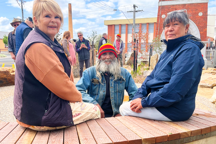 The new Indigenous Interpretive garden space, garingilang gatjin wii, at the Central Goldfields Art Gallery in Maryborough, was the setting for an arts and cultural talks afternoon last Sunday. Djaara Elders Aunty Marilyne Nicholls and Uncle Rick Nelson co-shared cultural talks about Country and explained the use of chosen stones, plants and rock wells. This followed the Welcome to the Country Smoking Ceremony by Uncle Rick Nelson.