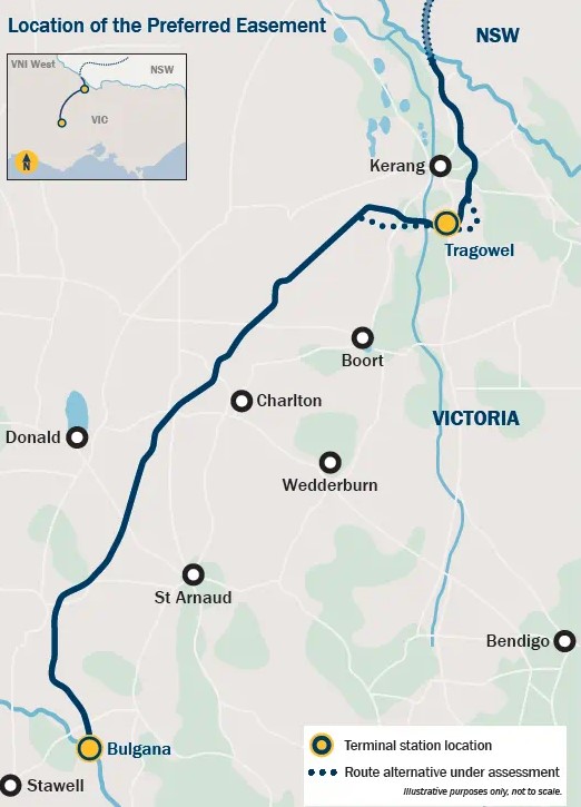 The preferred easement is around 70m wide along most of the route, subject to regulatory assessment under Environment Effects Statement (EES).