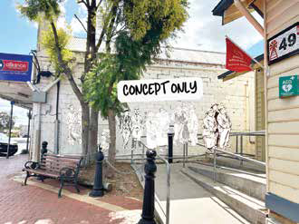 In August, a pop-up meeting invited feedback on the mural concept, and a visit to the State Library explored archival materials. During the same month, the community was invited to share input on the characters they’d like to see on the mural through café pop-ups, and a survey. The response was clear: people wanted nostalgic memories from Percy’s original black-and-white works. Permission to display the permanent exhibition of 20 framed prints in the Kaniva Visitor Centre was requested to the West Wimmera Shire Council.