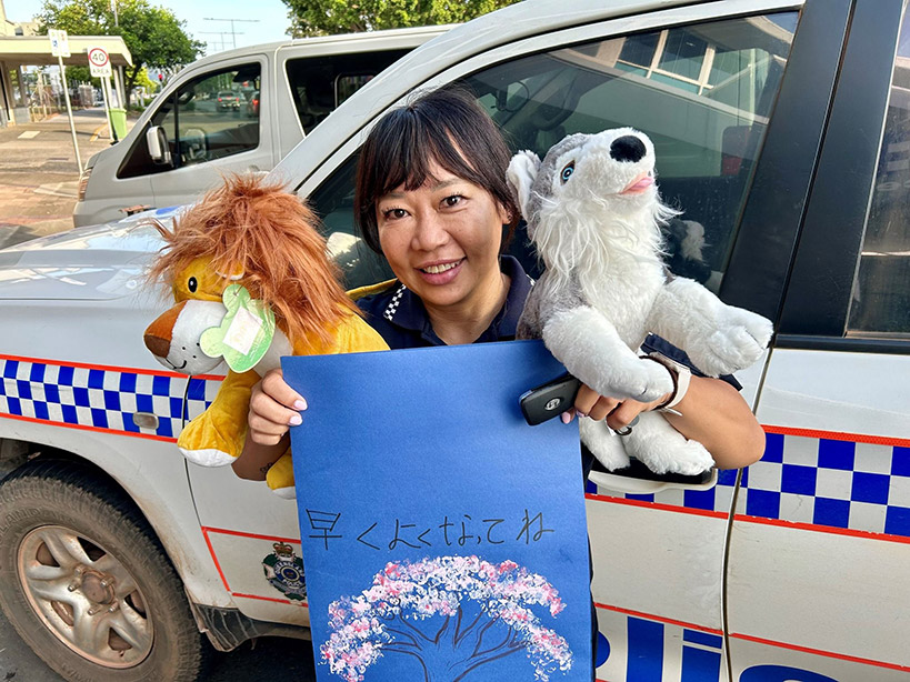 After receiving treatment in Townsville, Far North police officers, including a Cross-Cultural Senior Police Liaison Officer and detectives from Queensland Police Service’s (QPS) Cairns Child Protection and Investigation Unit, visited the injured boy and his family, presenting the gifts donated by the St Joseph’s OSHC students. The young boy has since returned to Japan with his family.