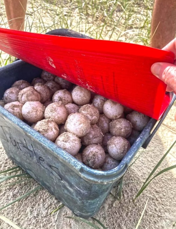 “The last nest that hatched here back in 2022 survived the floods and out of 115 eggs, only five didn’t make it which was a miracle. Rest assured they’re in very good hands.”