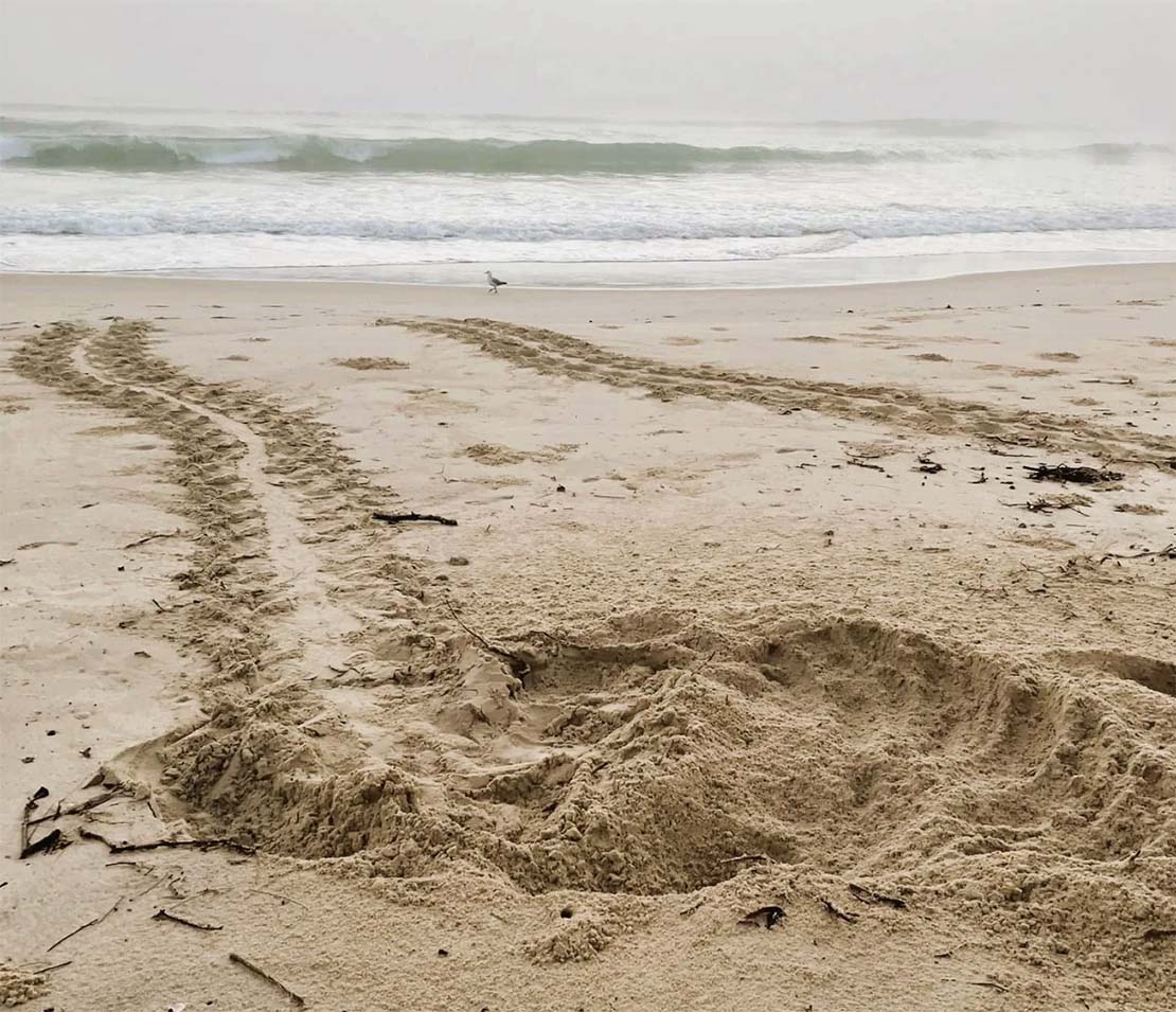 Leann called the experts. They arrived at the beach and could tell by the tracks that a loggerhead turtle had made the marks with its flippers.