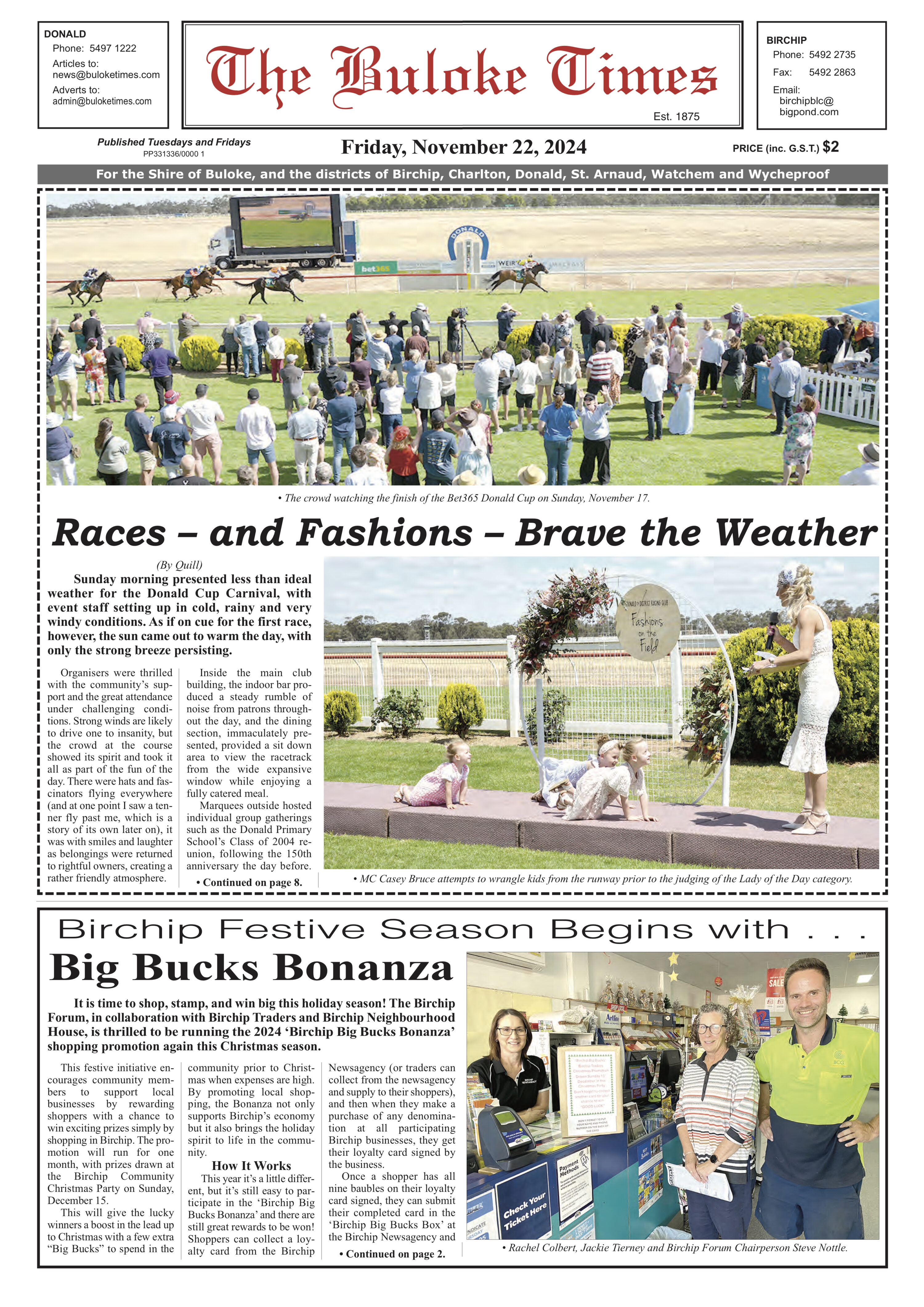 NewsOut now - Archive - November 2024Vic The Buloke Times, 22 November 2024 By The Buloke Times 22 November 2024 Recent stories Fertiliser shortage at home, subsidies for exports abroad Trevor Whittington, CEO WAFarmers - Council is running effectively – OLG Rodney Stevens, Clarence Valley Independent - Newstead medical physicist grateful to help community Contributor, Tarrangower Times - Old wool table now looks classy Mim Rogers, Allora Advertiser - New Australia-United Kingdom MOU to unlock more investment: Chalmers, Reeves Contributor, ARR.News - Country Cabinet to continue under re-elected Malinauskas Government: Malinauskas Contributor, ARR.News - Public artwork commission to celebrate Loddon riverbanks Contributor, ARR.News - Don’t risk a bite to the hand that feeds Contributor, ARR.News - Watch My Cousin Frank on SBS On Demand: NORPA Contributor, ARR.News - Welcoming Hurford Hardwood as a NORPA Partner: NORPA Contributor, ARR.News - Killing koalas with kindness: Vic Jurskis Vic Jurskis - Opening smarter pathways to cut landfill emissions and earn ACCU revenue: Wilson Contributor, ARR.News - Light Horse skills not lost Mark Collins, Corryong Courier - Environmental surveys continue Contributor, The Buloke Times - Farmers’ rights eroded Contributor, The Buloke Times - Load more The Buloke Timeshttps://www.buloketimes.com Out now!Buy here!  l  Subscribe here! Please leave this field emptyKEEP IN TOUCH Sign up for updates from Australian Rural & Regional News Manage your subscription We don’t spam! Read our privacy policy for more info. Thank you for subscribing for updates from Australian Rural & Regional News! By default you will receive all our newsletters. If you'd prefer to choose which newsletters you receive, go to the manage your subscription page make your selection. I'd love to hear from you if you have any feedback on the newsletter or the news platform or the news itself. Best Wishes, Fiona Fox The Editor Share FacebookLinkedinXPinterestWhatsAppEmailReddIt Previous articleTarrangower Times, 22 November 2024Next articleLeadership opportunities at Maldon Inc. For all the news from The Buloke Times, go to https://www.buloketimes.com/ Out Now! Tarrangower Times, 17 April 2026 Tarrangower Times - Clarence Valley Independent, 17 April 2026 Clarence Valley Independent - Corryong Courier, 16 April 2026 Mark Collins, Corryong Courier - Narrandera Argus, 16 April 2026 Narrandera Argus - On Our Selection News, 16 April 2026 Ted Rogers, On Our Selection News - The Buloke Times, 16 April 2026 The Buloke Times - Coast Community News, 16 April 2026 Coast Community News - The Koondrook and Barham Bridge Newspaper, 16 April 2026 Lloyd Polkinghorne, The Koondrook and Barham Bridge Newspaper - See all Latest stories from The Buloke Times on ARR.News Environmental surveys continue Contributor, The Buloke Times - 16 April 2026 Farmers’ rights eroded Contributor, The Buloke Times - 16 April 2026 In its 75th year – CFA raises $2.1 million for sick kids The Buloke Times - 9 April 2026 More murals for Donald Contributor, The Buloke Times - 2 April 2026 Birchip silo art reaches finish post The Buloke Times - 26 March 2026 A lifetime of achievements awarded The Buloke Times - 19 March 2026 Art and culture shine at Mali Heart Festival The Buloke Times - 12 March 2026 Ripper rainfall across the region The Buloke Times - 5 March 2026 Load more