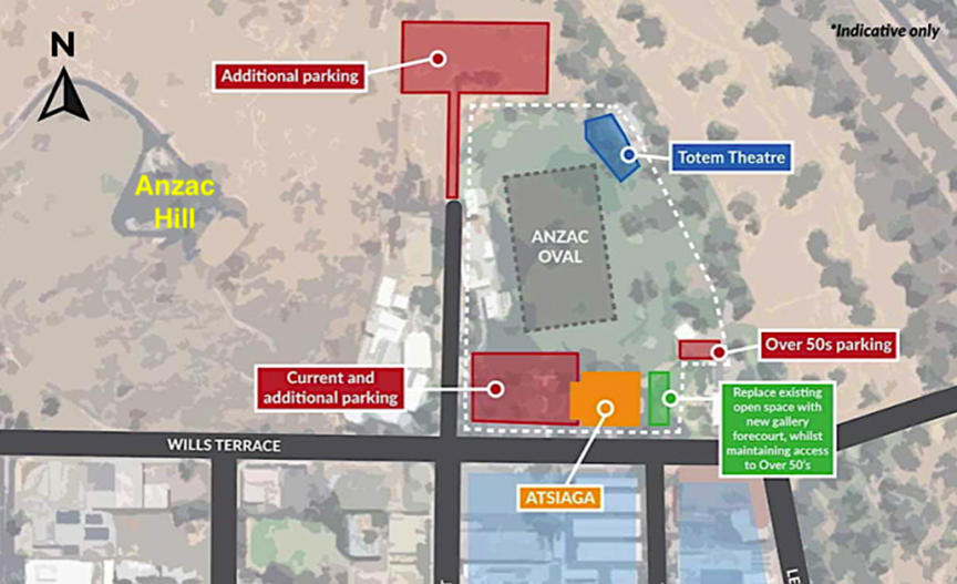 The Aboriginal art gallery, now known as ATSIAGA, will be placed on about half of the present Anzac Oval car park in Wills Terrace.