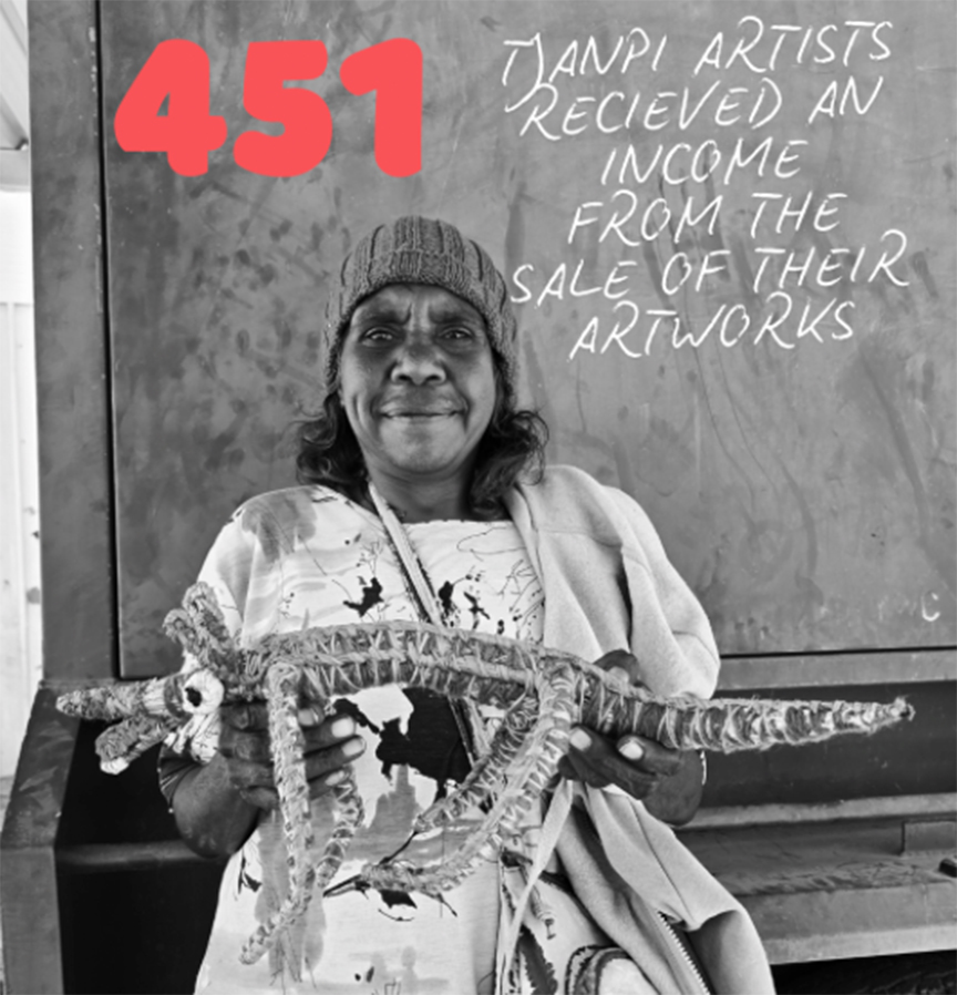451 Tjanpi artists received an income from the sale of their artworks: $438,761 worth of artwork were sold, 13 national exhibitions were presented and 309 artists received skills development workshops in 11 remote communities.