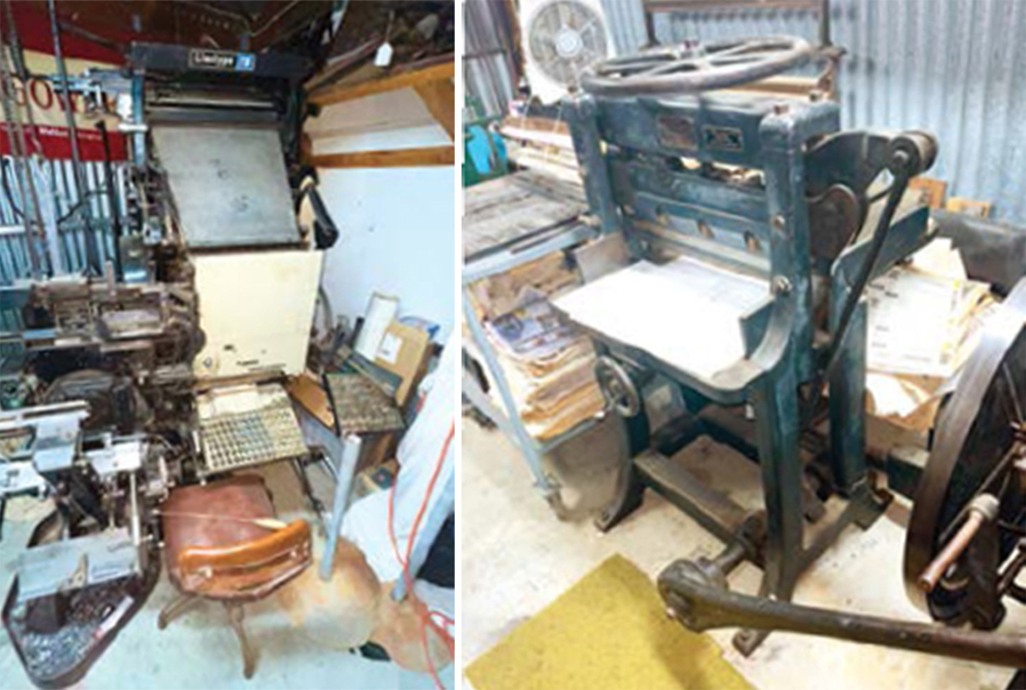 The very complicated-looking mechanical devices in the printing shop are primarily the actual presses used to publish the Tarrangower Times in the past.