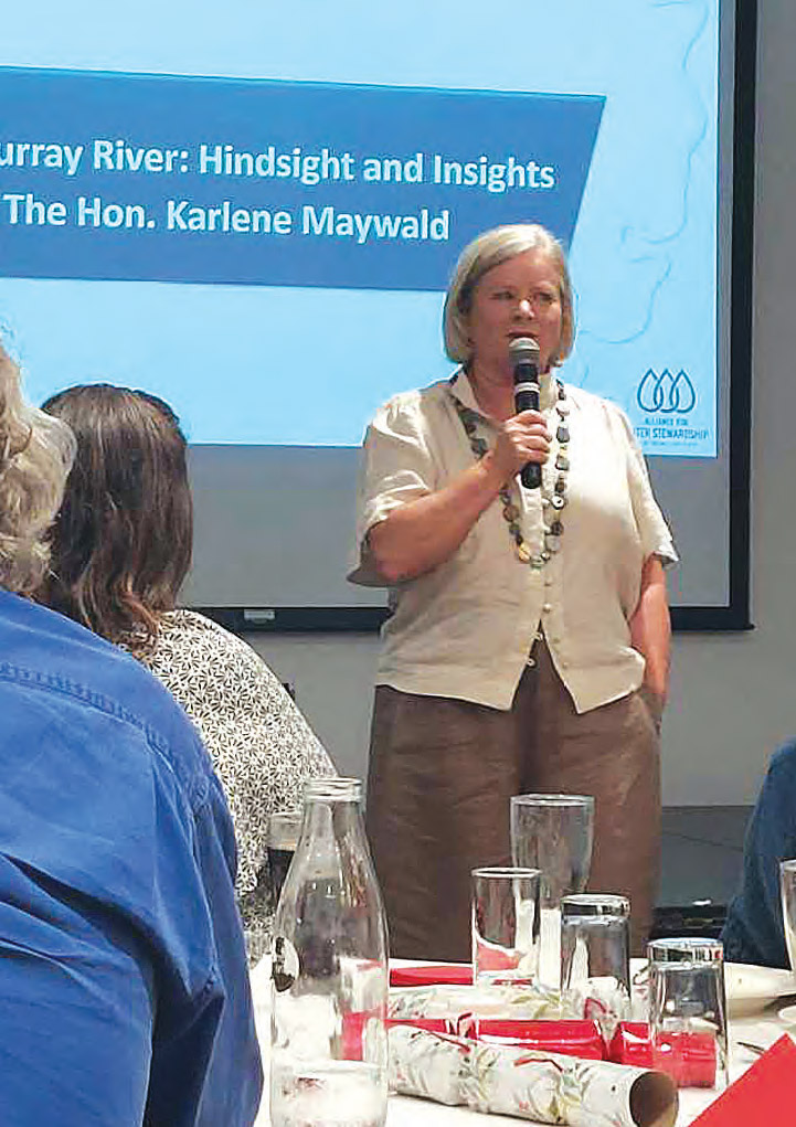 Former Chaffey MP Karlene Maywald was a guest speaker at the Renmark Irrigation Trust (RIT) annual general meeting, held last month at Hotel Renmark, with the topic being Our Murray River: Hindsight and Insights.