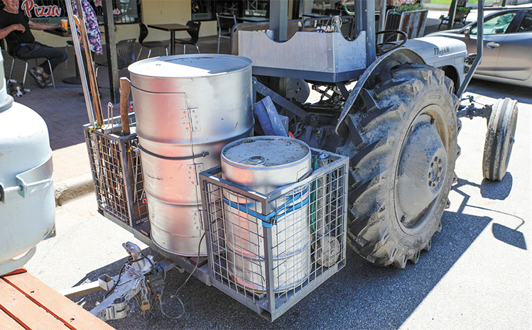 The Fergie tractor sports an extensive canopy and creatively designed toolbox fashioned out of a 44-gallon drum that rides on the home-built carryall. Greg originally purchased the tractor from South Australia. The little Fergie had some heart surgery itself, with Greg getting the cylinder head resurfaced and having the valves renewed.