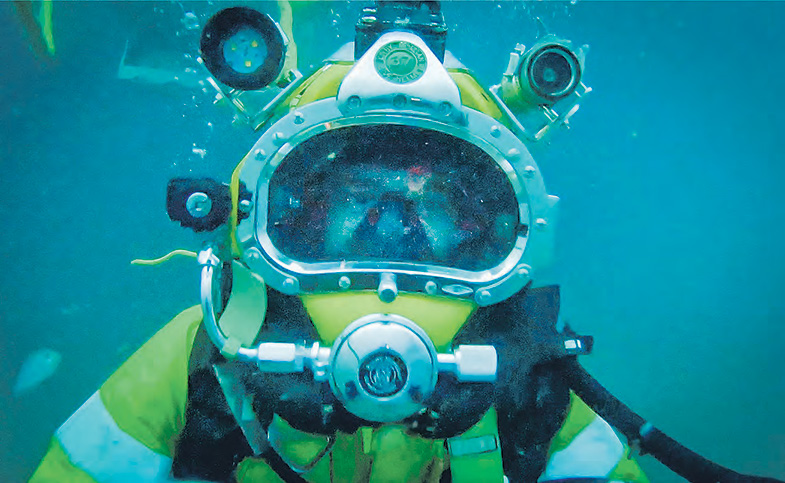 His astronaut-style helmet also carries communication cables, a video camera and lights. Jason said his work involved various dive depths and dive durations.