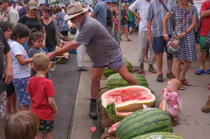 One of the traditions of the festival is to slice up the watermelons and share them with the crowd.