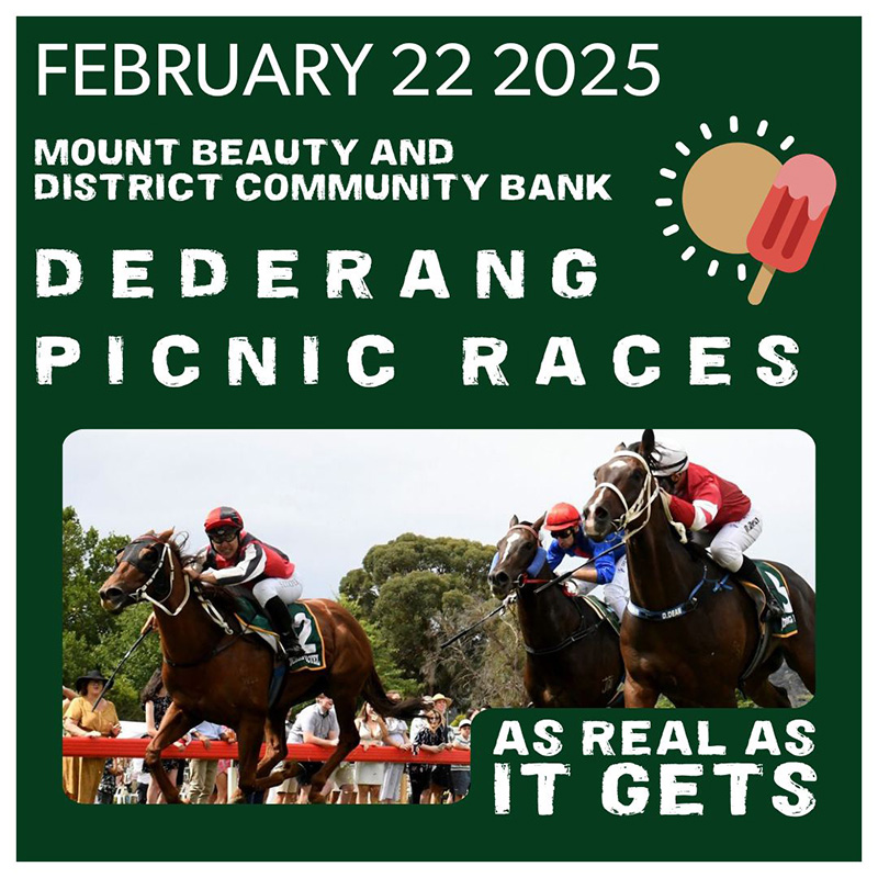 Get ready for a day of thrilling action and community spirit as the Dederang Picnic Race Club hosts its iconic six-race card on Saturday, 22 February 2025. The highlights of the day are the prestigious Milestones Chemicals Dederang Cup and the Lloyd Refrigeration Flying Handicap, with the entire day sponsored by the Mount Beauty & District Community Bank. This much-loved event is a celebration of all things local, living up to its motto, “for the community, by the community.”