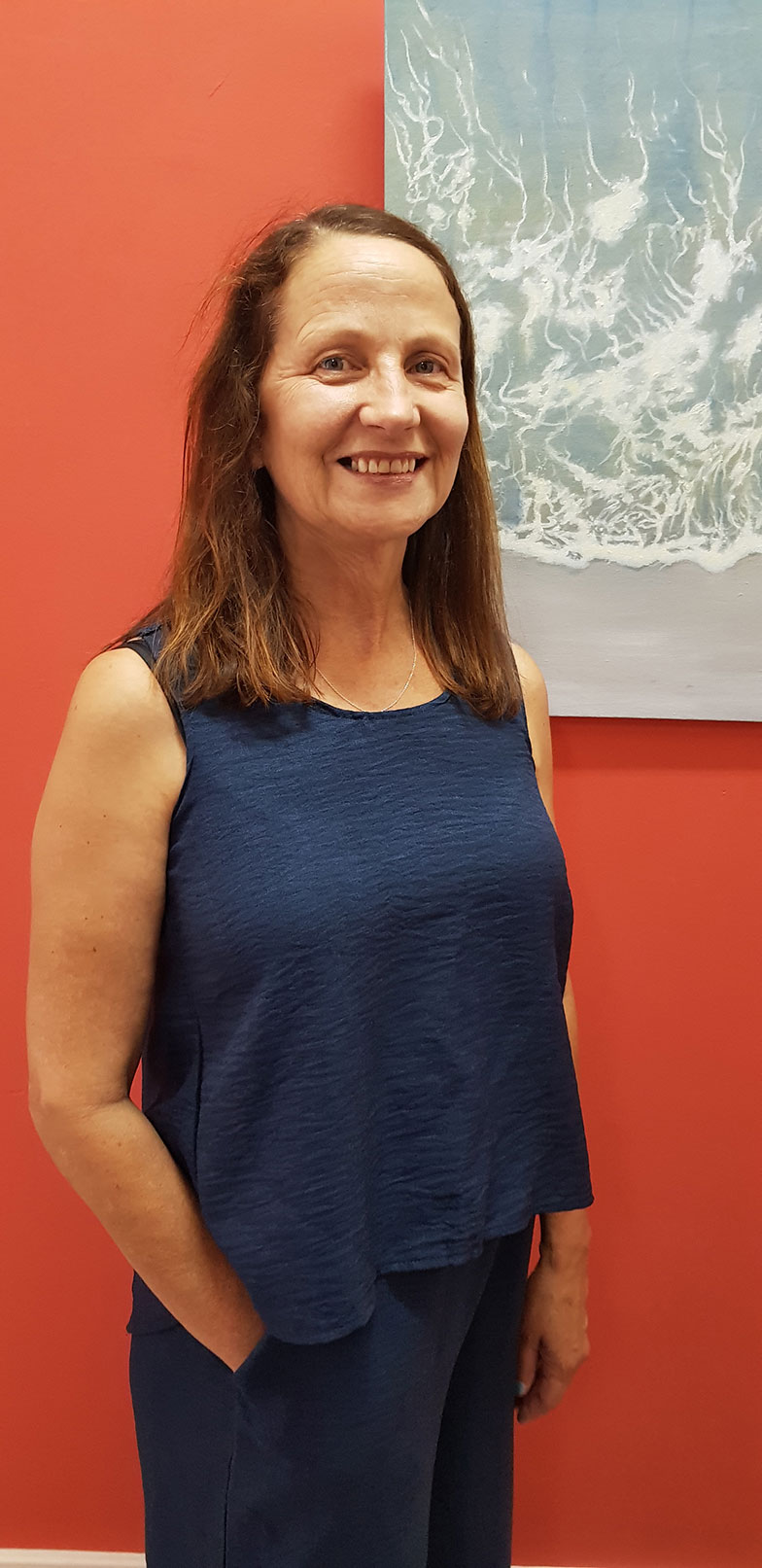 Opening alongside the Country Arts SA touring exhibition Island Welcome, Lisa said she enjoys the colours of Robe, of the sea, the skies and the waves. She began her current group of works with an on-line art course which taught painting techniques for all three.