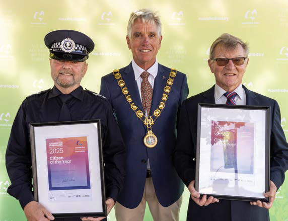 “It’s a privilege to be standing amongst such remarkable people. It’s also an honour to share this award with such a pillar of our town, David Steadman, and between you and me, it is also fantastic to be standing alongside somebody who is my height for once. That really doesn’t happen very often. Today’s (January 26) awards do not take anything away from the many people we all know who contribute so much to our town and to others. I feel personally very touched to be here with so many caring, kind and compassionate people that collectively, we call our community. Amanda (my wife) and I moved to Australia in 2009, and it is fair to say that most mornings, while walking our dogs, we acknowledge how lucky we are to be living and working among some truly great people. As a police officer, I work in family, domestic and sexual violence. Over the last couple of years, the police and our community have created a very unique and exceptional partnership in the form of the Upper South East Domestic Abuse Program. This program has helped many victims and survivors of domestic violence, regardless of gender, escape unsafe situations and find a safe passage to a new life. The outcomes of this partnership have been truly outstanding. But this is only one example of how strong and united our community is. I see firsthand how people deliver such generosity and kindness to others who are at their most vulnerable. Whether or not you celebrate Australia Day, it remains a day of unity for everyone in some form.”
