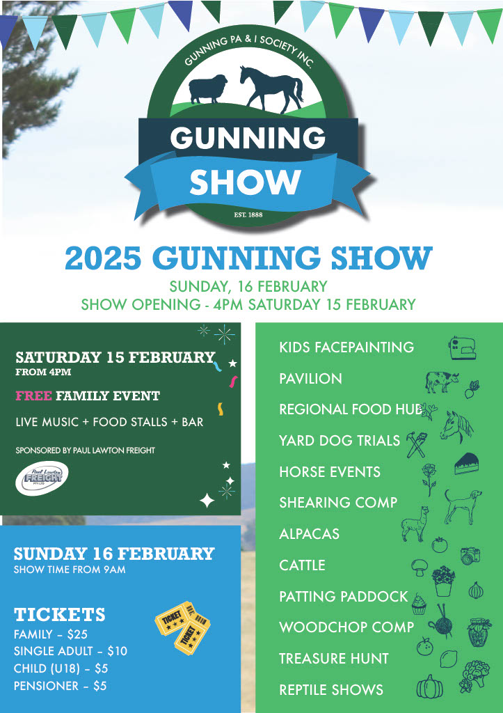 The 2025 Gunning Show is just around the corner, with locals already preparing for what promises to be an exciting mix of tradition and fresh energy. The main event is on Sunday, 16 February, and the community is in for a weekend full of old favourites, exciting new attractions, and plenty of opportunities to catch up with friends and neighbours.