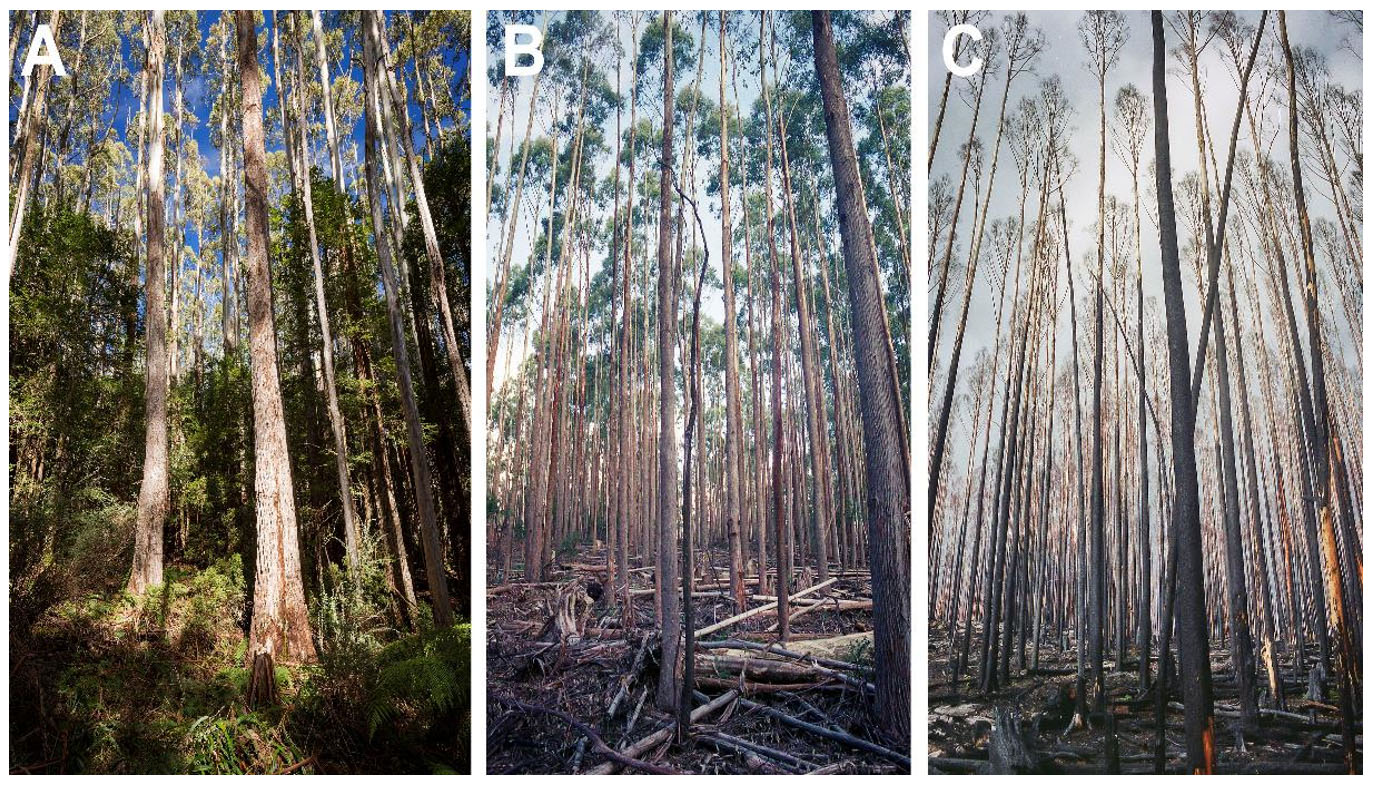 A detailed empirical study following the 2009 Black Saturday wildfires, published in the international journal Conservation Letters, analysed 633 sites to examine the relationship between fire severity and forest age—including forests that had been logged and regenerated (Taylor et al. 2014). The results were clear: