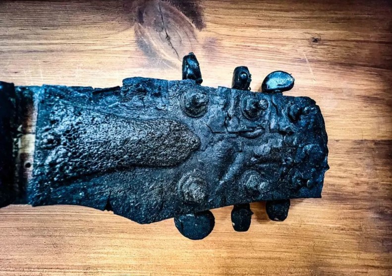 A man named Cowboy brought in a burnt guitar from the bushfires.