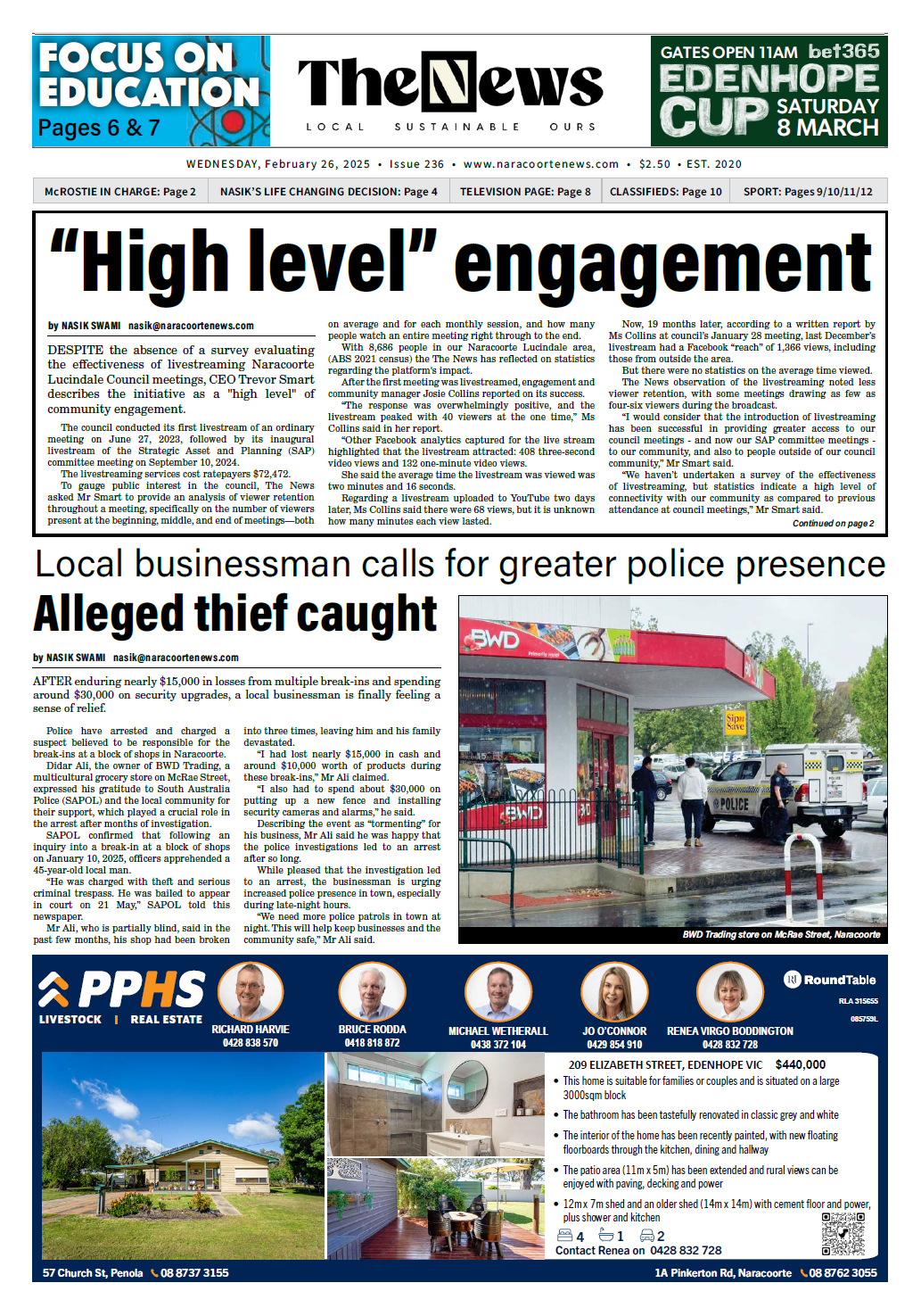NewsOut now - Archive - February 2025SA The Naracoorte News, 26 February 2025 By Michael Waite, Naracoorte Community News 26 February 2025 Recent stories Opening smarter pathways to cut landfill emissions and earn ACCU revenue: Wilson Contributor, ARR.News - Light Horse skills not lost Mark Collins, Corryong Courier - Environmental surveys continue Contributor, The Buloke Times - Farmers’ rights eroded Contributor, The Buloke Times - Fuel crisis hits hard Narrandera Argus - Ramsay local to captain Queensland Polocrosse team Ted Rogers, On Our Selection News - Getting fertiliser to farmers faster: Collins Contributor, ARR.News - $3 million boost drives groundbreaking koala research in Port Stephens: Watt, Swanson Contributor, ARR.News - Whales are making an appearance Coast Community News - Cohuna turns out for barefoot titles opener Contributor, The Koondrook and Barham Bridge Newspaper - Farmer left bone dry after fuel theft Contributor, The Koondrook and Barham Bridge Newspaper - LambEx26 program launch Contributor, ARR.News - Radical Right v Radical Left and the threat of the Age of Unreason Kookaburra, ARR.News - Renewed effort to supercharge faba bean breeding and expansion: GRDC Contributor, ARR.News - Elders bales on WA wool growers – Just the tip of the iceberg: Geoff Pearson WAFarmers Contributor, ARR.News - Load more Michael Waite, Naracoorte Community Newshttps://www.naracoortenews.com/ Out now!Buy here! I Subscribe here! Please leave this field emptyKEEP IN TOUCH Sign up for updates from Australian Rural & Regional News Manage your subscription We don’t spam! Read our privacy policy for more info. Thank you for subscribing for updates from Australian Rural & Regional News! By default you will receive all our newsletters. If you'd prefer to choose which newsletters you receive, go to the manage your subscription page make your selection. I'd love to hear from you if you have any feedback on the newsletter or the news platform or the news itself. Best Wishes, Fiona Fox The Editor Share FacebookLinkedinXPinterestWhatsAppEmailReddIt Previous articleNhill Free Press & Kaniva Times, 26 February 2025Next articleThe Riverine Grazier, 26 February 2025 For all the news from Naracoorte Community News, go to https://www.naracoortenews.com/ Out Now! Corryong Courier, 16 April 2026 Mark Collins, Corryong Courier - Narrandera Argus, 16 April 2026 Narrandera Argus - On Our Selection News, 16 April 2026 Ted Rogers, On Our Selection News - The Buloke Times, 16 April 2026 The Buloke Times - Coast Community News, 16 April 2026 Coast Community News - The Koondrook and Barham Bridge Newspaper, 16 April 2026 Lloyd Polkinghorne, The Koondrook and Barham Bridge Newspaper - Allora Advertiser, 15 April 2026 Mim Rogers, Allora Advertiser - Murray Pioneer, 15 April 2026 Murray Pioneer - See all Latest stories from Naracoorte Community News on ARR.News Naracoorte’s rising star Nasik Swami, Naracoorte Community News - 15 April 2026 I am ready to get to work Nasik Swami, Naracoorte Community News - 8 April 2026 Mayor pay push splits council Nasik Swami, Naracoorte Community News - 1 April 2026 “I am sorry” – McBride ends political career Nasik Swami, Naracoorte Community News - 25 March 2026 NLC supports cave research Chris Oldfield, Naracoorte Community News - 18 March 2026 Who will it be? Nine-way race for MacKillop Nasik Swami, Naracoorte Community News - 11 March 2026 Radiotherapy wins backing from MacKillop candidates Nasik Swami, Naracoorte Community News - 4 March 2026 Minor doctor share: Just three of 12 new interns based locally despite ‘major service centre’ status Nasik Swami, Naracoorte Community News - 25 February 2026 Load more