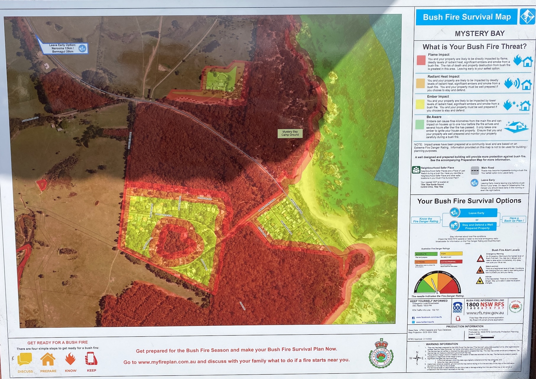 The photo below, taken at nearby Mystery Bay, highlights the bushfire risks residents face. However, it conveniently overlooks the responsibilities of forest managers and land owners in ensuring public safety.