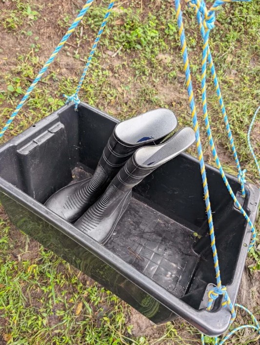 The bridge has no floor to it, only the pole structure remains, so to make it easier to get supplies in Paul built a flying fox on Thursday, March 13.