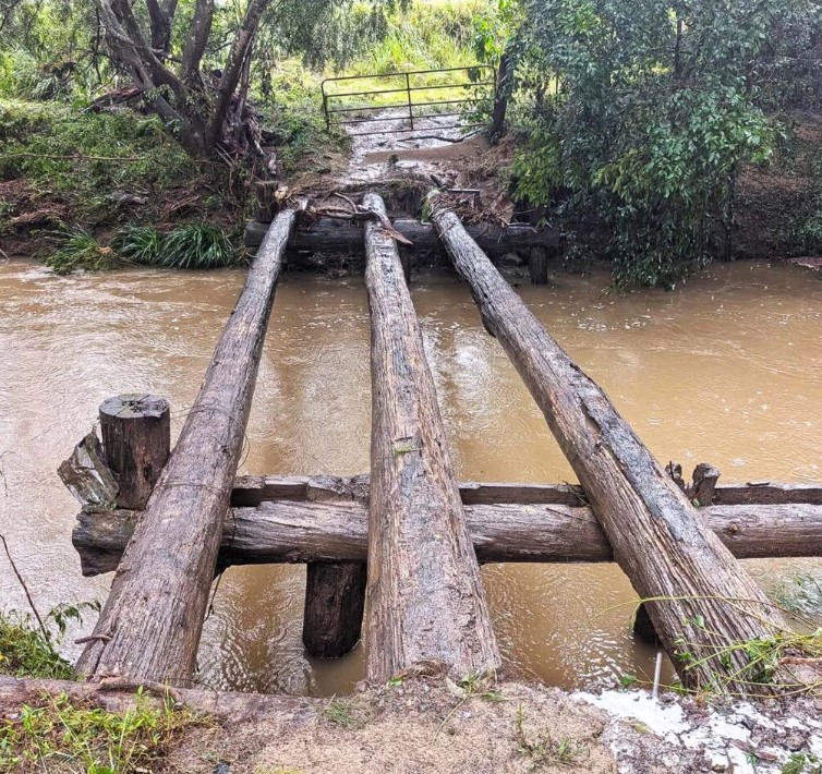 On a property at Upper Duck Creek, near old Bonalbo, a woman in her 80s living with her son, in his 60s (both asked not to be named) have no access in and out of their farm because the bridge was washed away during recent flooding. The damaged bridge is not on their land.