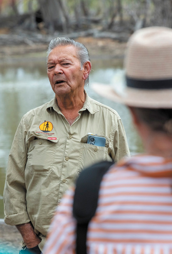 The tour which was guided by local elder Uncle Ron Galway of Barapa Barapa, offered an immersive experience of storytelling, cultural heritage, and history. Uncle Ron guided the group through the lagoon, sharing the stories of his ancestors and providing insights into the cultural practices, traditional land management, and the spiritual significance of this sacred place. His storytelling brought the past to life, allowing guests to connect deeply with the land and its history.