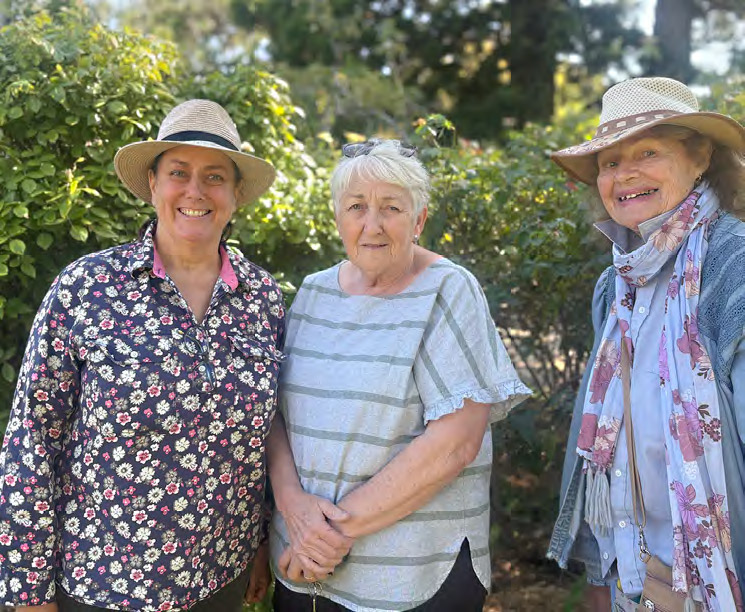 Ms Dunn is pictured in front of Bishop’s Lodge Garden’s Cecile Brunnep Polyantha from 1881, an old-fashioned buttonhole sized, double pink blooms in perfect Hybrid Tea form with a soft apple fragrance. With her are Anne Longworth and Coleen Houston who enjoyed the lively discussion on ‘all things roses’.