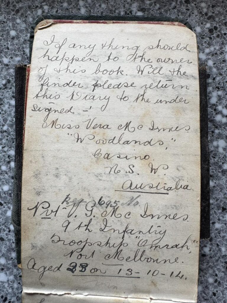 The Evans Head Living Museum has started the process of copying the diary and sending the images to the National Archives of Australia, where it’s hoped they will be added to Private McInnes’ War Service Records, which are available online.