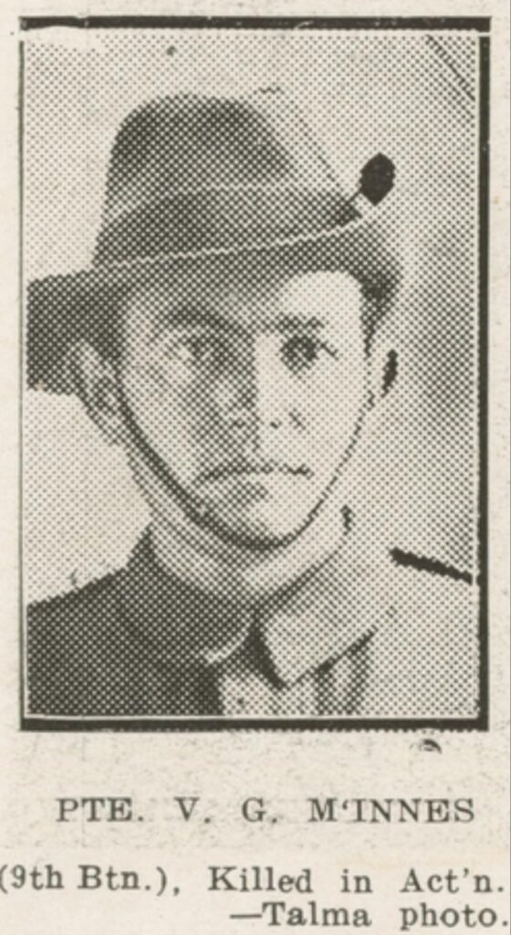 Private Volney George McInnes Service Number 695 from Casino enlisted at Lismore in 1914, and was immediately taken into the Australian Army Infantry Forces 9th Battalion D Corp.