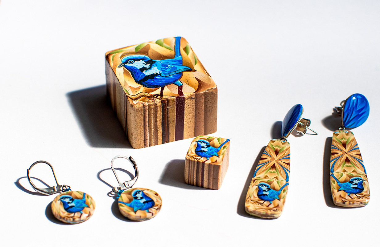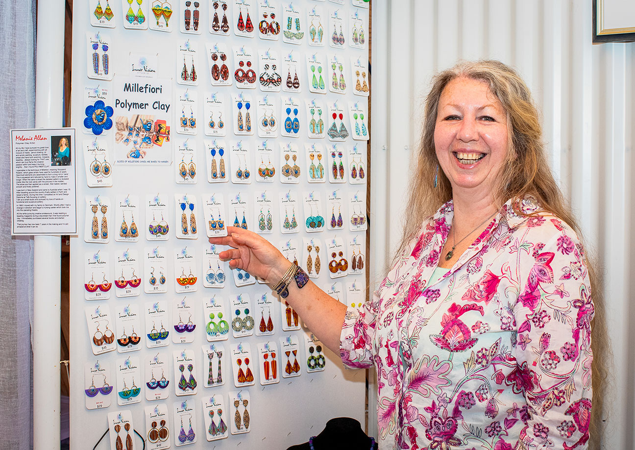 At first glance it’s easy to presume that Melanie Allan’s polymer clay jewellery is made by painting on pictures or sticking on patterns. Nothing could be further from the truth.