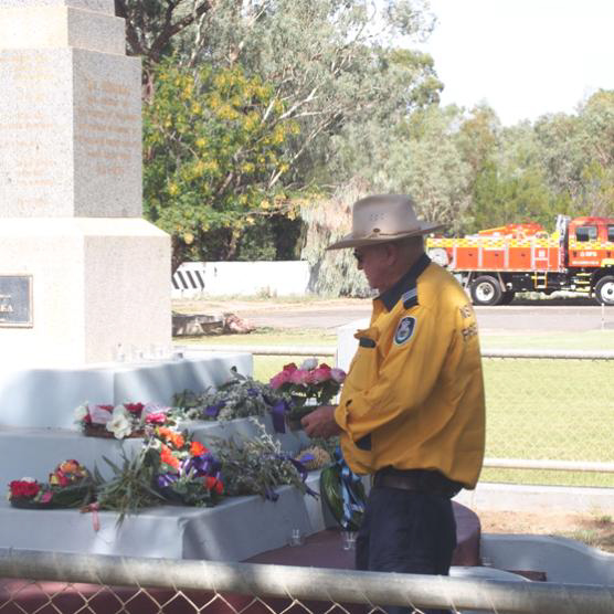 Organisers thank everyone who pitched in to help set up, the breakfast BBQ cooks Kerrie Pearson and Jody Pearce, the Auld father and daughter team Jeremy (MC duties) and Zahlia who ran the wreath laying portion of the service, the small army of women who supervised the morning tea, and the extended Howard family who packed everything up in no time flat. Thanks to the Shire for having the Memorial ready, the Golf Club for printing the programmes, Wilcannia Police for stepping up to read the prayer and address, Greg Barraclough and Jane Bates – march marshals; Sister Elizabeth Young, RSM., Cliffie Awege for organising the power, Christian Stang for the ‘Moorabin’ rosemary, and those who organised and laid the record number of wreaths. Although the rain on Friday night was welcome, 45mm on the wreaths did not leave them in lasting condition.