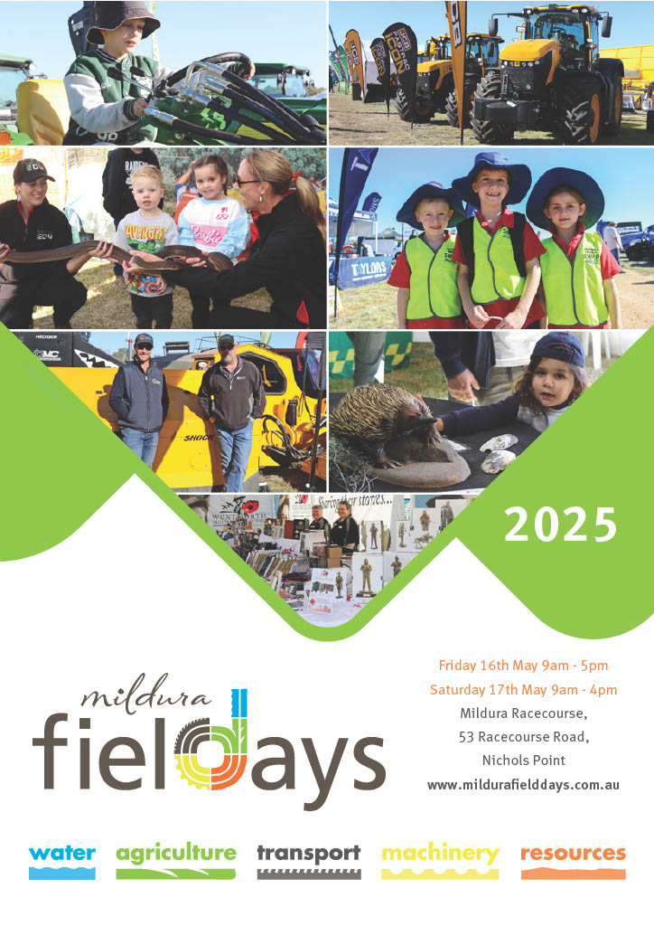 More information is available by contacting Mildura Field Days on Mob: 0487 021 122, visit the website Click here. Email jo@mildurafielddays.com.au or view the Mildura Field Days Facebook page Click here.