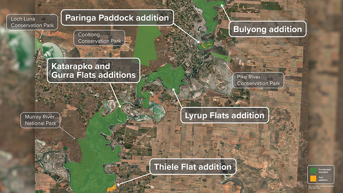 Murray River National Park and Maize Lagoon Conservation Park in the Riverland, as well as Sceale Bay Conservation Park on Eyre Peninsula, will be expanded.