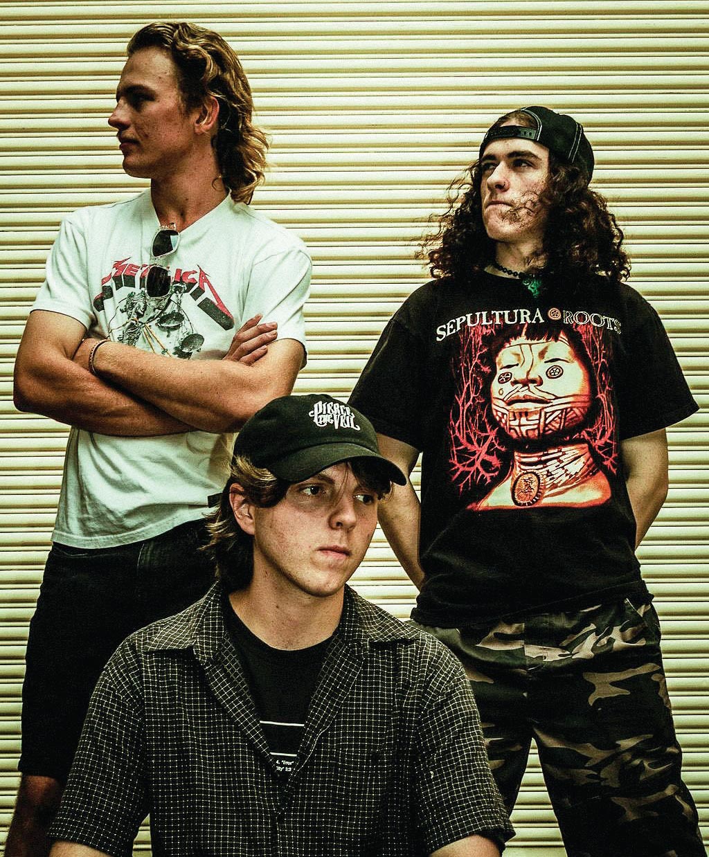 Band members: (left) Ambrose Barton on bass, (front) Patrick Back singer-guitarist and (right) Brady Wilson on drums.