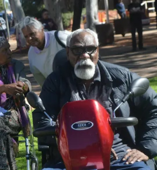 The vigil ended on the courthouse lawns, in front of the police station. Elder Ned Jampjinpa Hargraves (pictured), who said White was his “my jaja” (grandson), said at the top of his voice: “We want justice. Enough is enough.”
