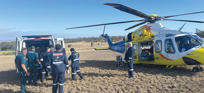 The LifeFlight critical care doctor and a Queensland QAS flight paramedic worked with local QAS paramedics to treat the patient for a severe arm injury.