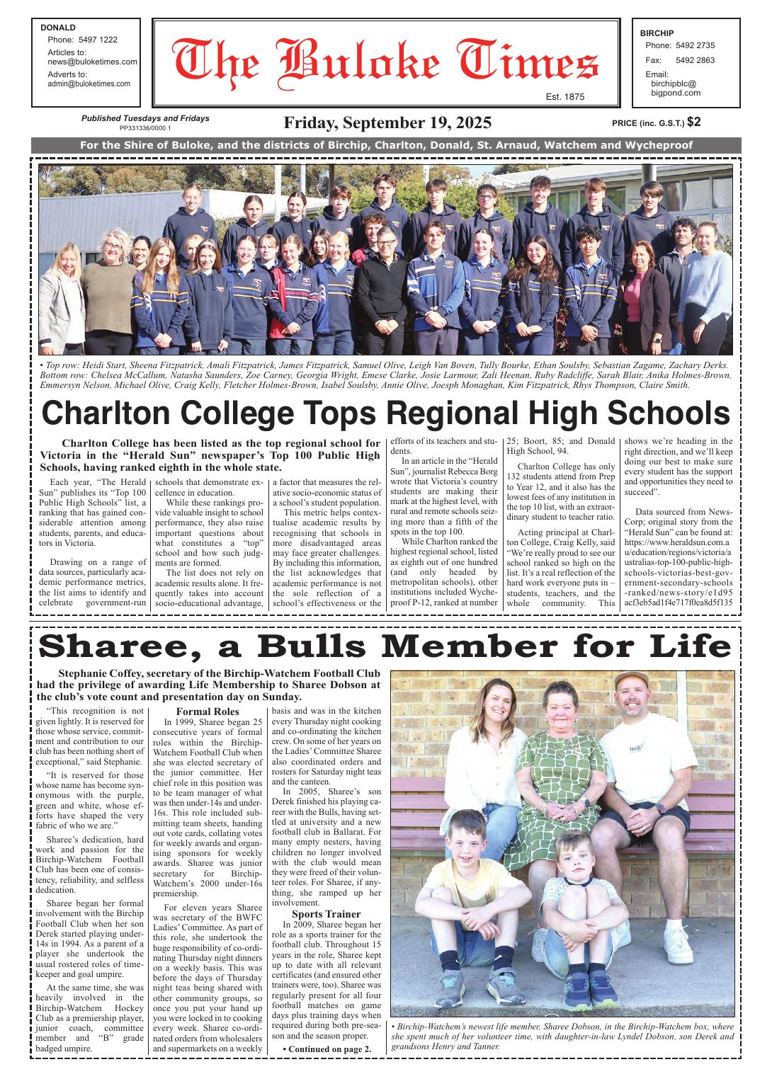 While Charlton ranked the highest regional school, listed as eighth out of one hundred (and only headed by metropolitan schools), other institutions included Wycheproof P-12, ranked at number 25; Boort, 85; and Donald High School, 94.