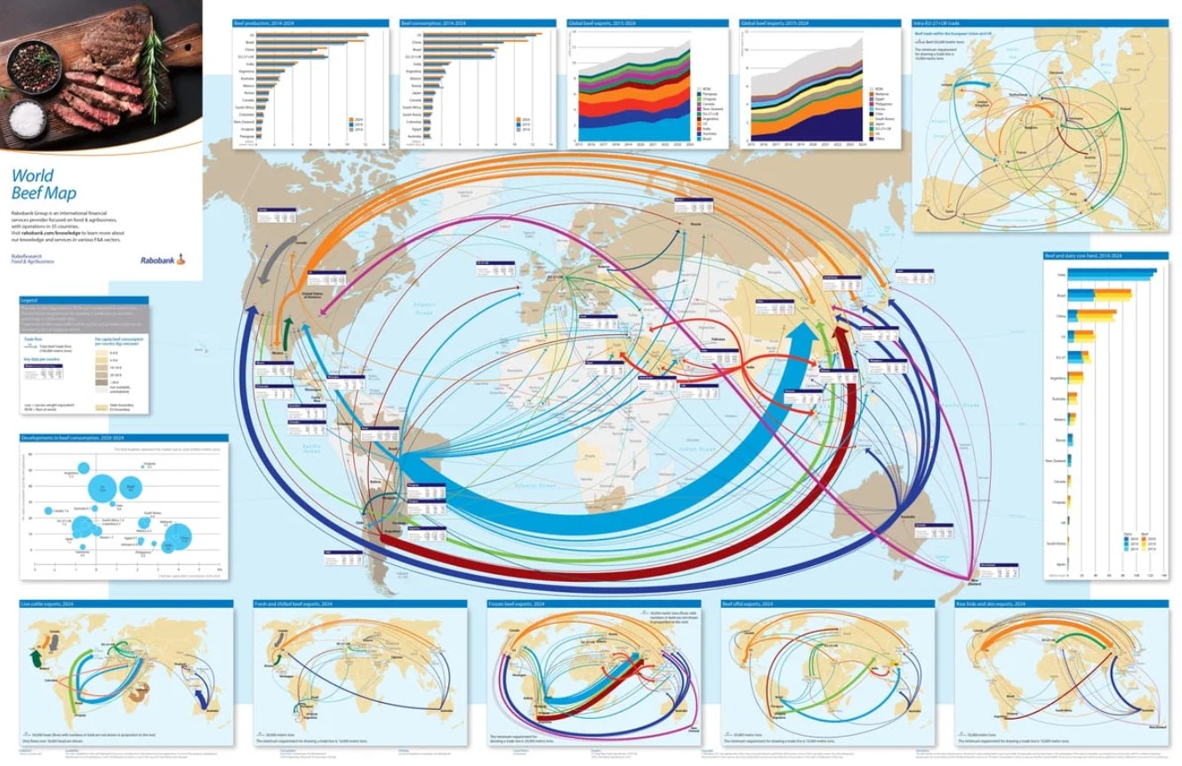 The report and accompanying world beef map highlight global beef trade has increased substantially over the past five years, with exports rising by 14 per cent from 2019 to nearly 13 million metric tons in 2024.