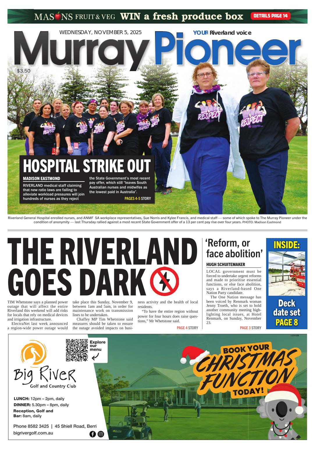 Though modelled on Victorian ratios, and constructed under “extensive consultation” with ANMF SA, striking nurses and midwives from the Berri-based Riverland General Hospital — speaking to The Murray Pioneer under the condition of anonymity — claimed the ratios were not efficient for rural and regional hospitals, and in fact, only enforcing and maintaining current workload pressure.