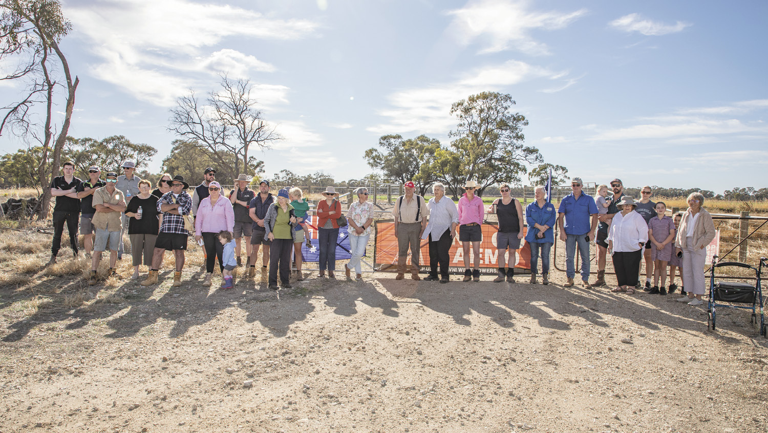 Amongst the crowd is Mick Shepard. Mick and wife Kath left their Tragowel property after the family farm became swamped by renewables and the neighbouring terminal station.