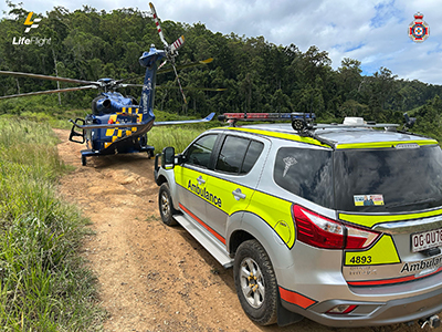 The critical care LifeFlight doctor and Queensland Ambulance Service (QAS) flight paramedic worked with local QAS paramedics to treat the patient for a lower leg injury.