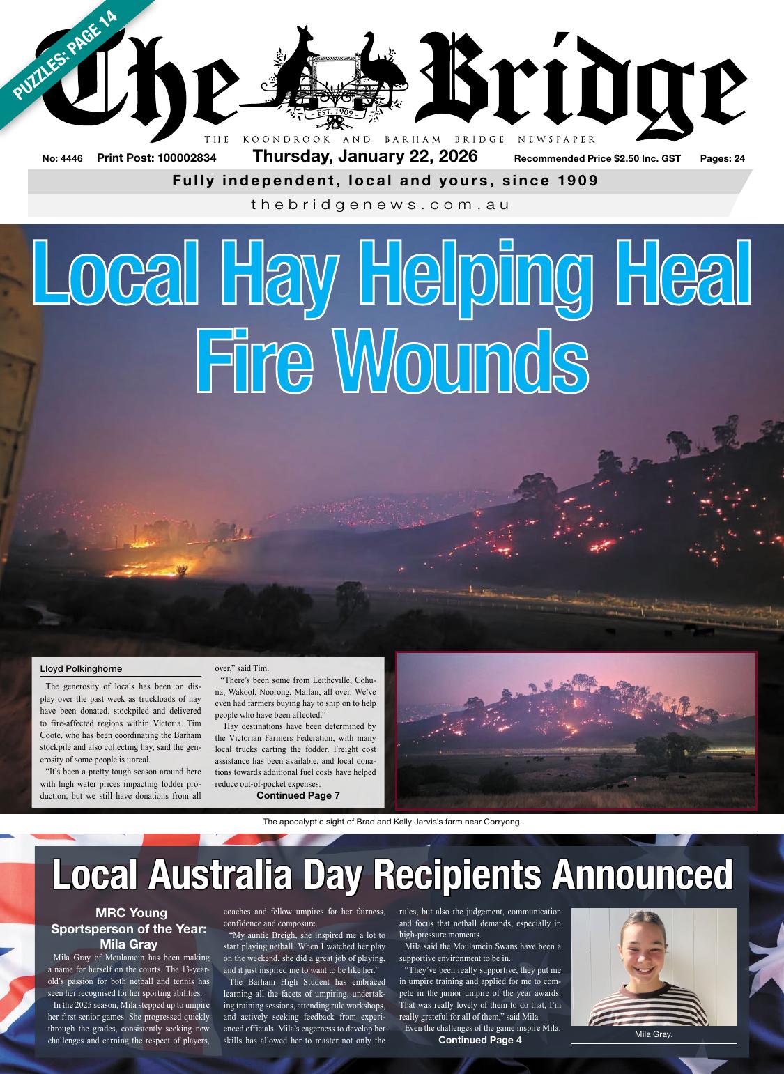 This article appeared in The Koondrook and Barham Bridge Newspaper, 22 January 2026.