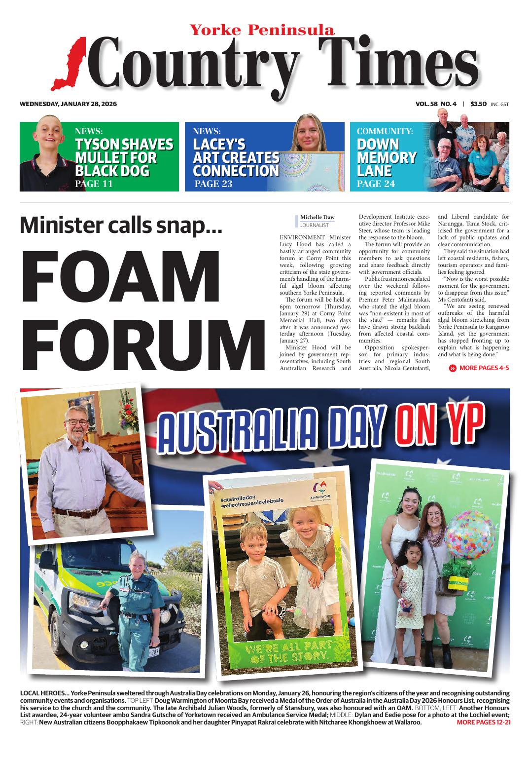 This article appeared in Yorke Peninsula Country Times, 28 January 2026.