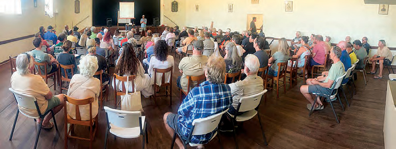 It featured local citizen scientist Lochie Cameron, who presented results of recent testing of water samples in the area, which found disturbingly high levels of cells from various species of Karenia algae (see separate story).