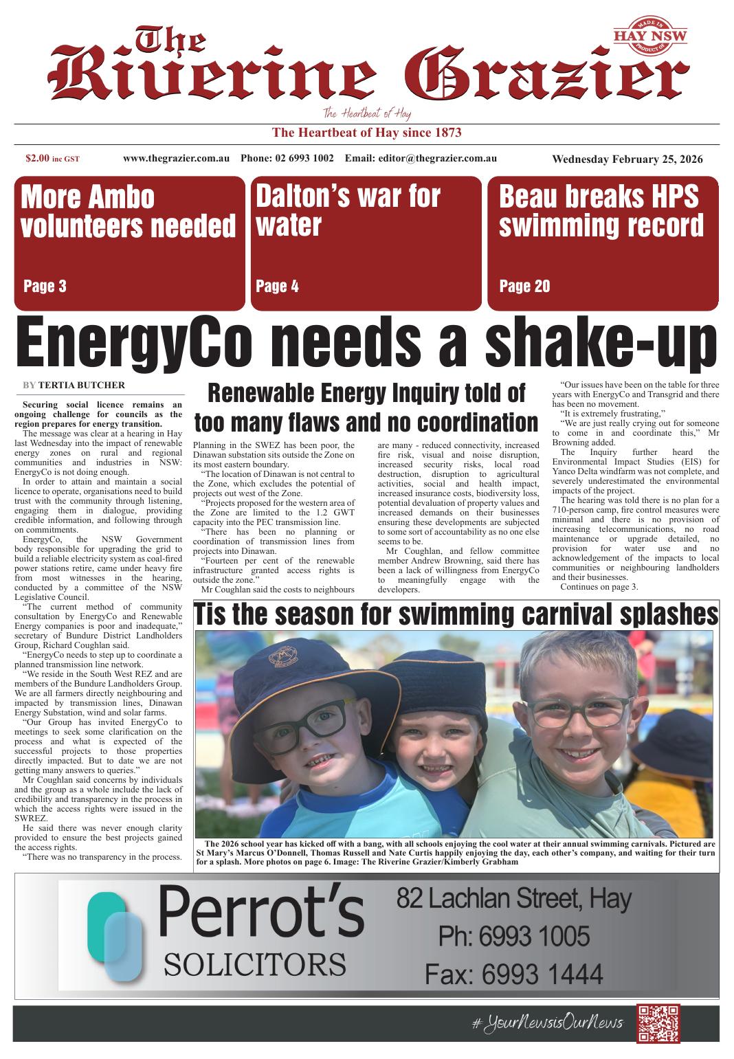 The message was clear at a hearing in Hay last Wednesday into the impact of renewable energy zones on rural and regional communities and industries in NSW: EnergyCo is not doing enough.