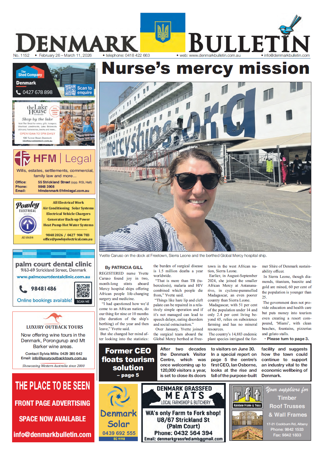 NewsOut now - Archive - February 2026WA Denmark Bulletin, 26 February 2026 By Denmark Bulletin 26 February 2026 Recent stories Right royal award for a guinea pig lover Coast Community News - Labor Government must act on wine crisis to help fuel crisis: Canavan, Chester Contributor, ARR.News - Renewables lift supply share as batteries re-shape energy markets: AEMO Contributor, ARR.News - Westbrook ANZAC service still growing Ted Rogers, On Our Selection News - Strong turnout for ANZAC Day Coast Community News - Reflection and remembrance on the Mount The Buloke Times - Cadets honoured with memorial role Mark Collins, Corryong Courier - Our fallen will never be forgotten Mark Collins, Corryong Courier - River Country Art Trail unveiled Contributor, The Koondrook and Barham Bridge Newspaper - Faster environmental approvals with states and territories: Albanese, Watt Contributor, ARR.News - Rabobank commentary: food price inflation remains entrenched above three per cent Contributor, ARR.News - Students gain insight into engineering careers Narrandera Argus - Epic Fury and Ukrainian farmers: Who will win? Pavel Kuliuk, ARR.News - Farmland prices set for continued “modest” growth in year ahead – Rabobank Contributor, ARR.News - Agricultural industry bodies seek amendments to proposed legislative reform to maintain protections for Condamine Alluvium groundwater system critical for farmers and rural communities: QFF Contributor, ARR.News - Load more Denmark Bulletinhttp://www.denmarkbulletin.com.au/ Out now! Available here! Please leave this field emptyKEEP IN TOUCH Sign up for updates from Australian Rural & Regional News Manage your subscription We don’t spam! Read our privacy policy for more info. Thank you for subscribing for updates from Australian Rural & Regional News! By default you will receive all our newsletters. If you'd prefer to choose which newsletters you receive, go to the manage your subscription page make your selection. I'd love to hear from you if you have any feedback on the newsletter or the news platform or the news itself. Best Wishes, Fiona Fox The Editor Share FacebookLinkedinXPinterestWhatsAppEmailReddIt Previous articleCoast Community News, 26 February 2026Next articleThe Buloke Times, 26 February 2026 For all the news from the Denmark Bulletin, go to http://www.denmarkbulletin.com.au/ Out Now! The Buloke Times, 30 April 2026 The Buloke Times - On Our Selection News, 30 April 2026 Ted Rogers, On Our Selection News - Narrandera Argus, 30 April 2026 Narrandera Argus - Corryong Courier, 30 April 2026 Mark Collins, Corryong Courier - Coast Community News, 30 April 2026 Coast Community News - The Koondrook and Barham Bridge Newspaper, 30 April 2026 Lloyd Polkinghorne, The Koondrook and Barham Bridge Newspaper - Allora Advertiser, 29 April 2026 Mim Rogers, Allora Advertiser - Yorke Peninsula Country Times, 28 April 2026 Yorke Peninsula Country Times - See all Latest stories from the Denmark Bulletin on ARR.News Family to donate ‘treasure’ beach find to museum Denmark Bulletin - 23 April 2026 Henri to take on the world after nationals sailing victory Denmark Bulletin - 23 April 2026 Custodial ownership sees Denmark’s jewel sparkle Denmark Bulletin - 9 April 2026 Classic recipe for a long life Denmark Bulletin - 26 March 2026 Wendy’s dream world on show at gallery Denmark Bulletin - 12 March 2026 Nurse’s mercy mission Denmark Bulletin - 26 February 2026 West Coast fishing ban causes south coast congestion Denmark Bulletin - 12 February 2026 Polish home now in Denmark Denmark Bulletin - 29 January 2026 Load more
